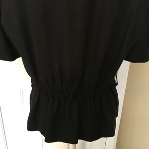 Linen blend short sleeve jacket with gathered waist. You can add a belt with XX detailed belt loops or leave it plain. Either way, stylish and cute. This is a Rodier 44/US 12