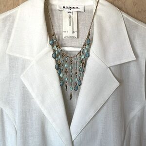 Dress it up or down. Chic and stylish. Wear it over jeans or add a striking necklace to show off the V neck with lapels. Button front w RODIER engraved shell buttons.