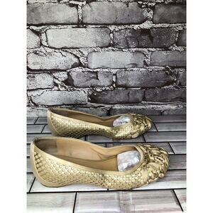 Rodo Beige Gold Silk Gem Rhinestone Ballet Flats Women sz 38EU/7.5M US