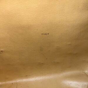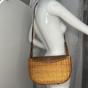 This is a beautiful Rodo Rattan Leather Adjustable Shoulder Crossbody Strap Made in Italy Rare. Tightly woven rattan with leather top flip snap closure. Adjustable strap from 11” shoulder to 20” crossbody length. Very roomy structured body opens to leather lined wall slip in pocket. Rodo and Italy stamp. Goldtone hardware 12” Long x 7” High x 3.5” Deep when closed and opens to 5.5” depth. 4 feet at bottom. Minor scuffs and pen marks on the interior. No odors. The flap is separating on the interior when opens, but can easily be glued or stitched and it almost seems like it’s better for the flap to be in this condition so there are are creases. Not see once worn.