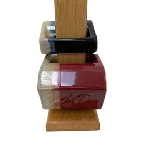 Rodolfo Padilla Mugs Lot of 3 With Wooden Mug Tree Stand Kokopelli Dolphin