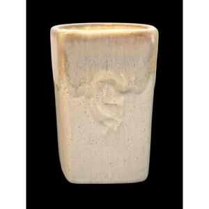 Glaze: Natural beige stoneware with soft cream-to-blue dripped glaze accents.