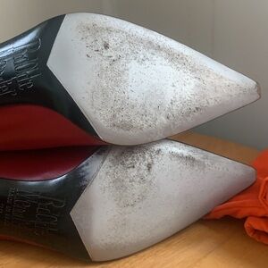 These boots are very stylish, hard to find rare. The boot can be worn a few different ways - fold the top all the way up for a high coverage boot, fold halfway over for mid coverage, or can be folded down over the heel for an ankle boot look. Condition is good - minor scuffs on the sole, sliver logo in the insole is slightly worn off. Heel shows very little wear.