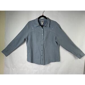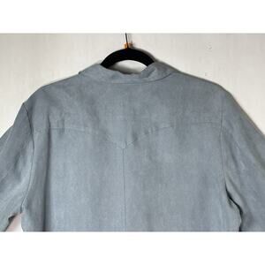 Rod's Womens Large Western Pearl Snap Shirt FLORAL Blue Microsuede Faux Suede LS