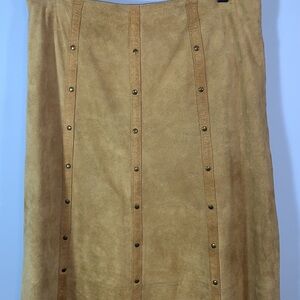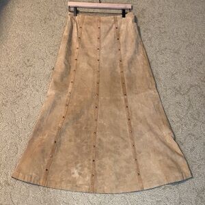 Rods camel tan suede studded maxi aline leather skirt size 8 vintage western