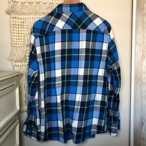 Roebuck & Co Blue Plaid Button Down long sleeve shirt size Large. Excellent condition.