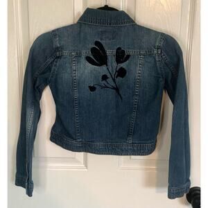 Roebuck & Co. Girl's Embroidered Flowers Jean Jacket Front Pockets Medium 10/12