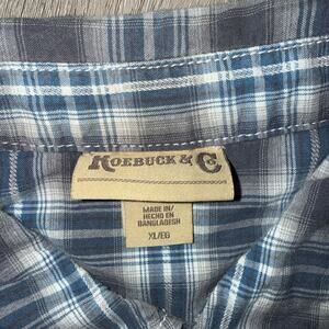 Keywords: Roebuck plaid shirt men XL snap button Western pearl snaps short sleeve casual cotton