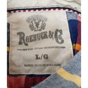 Roebuck & Co Red Blue Plaid Flannel Shirt Men's L Cotton Pockets Lumberjack Vibe