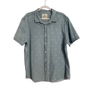 Roebuck & Co Vintage Men's XL Beach Fisherman Button Up Short Sleeve Shirt Shark