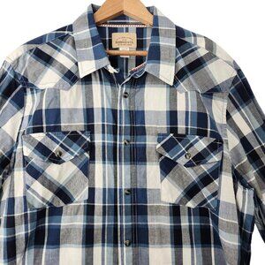 Roebuck & Co Western Blue Gray Plaid Snap Front Shirt Men's XL NWOT