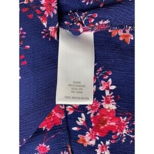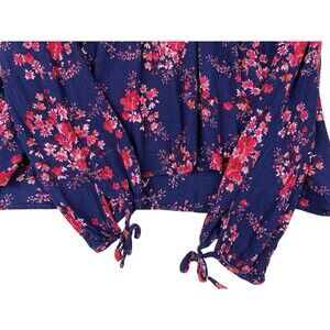 Roebuck & Co Womens Floral Peplum Top M Navy Pink Long Sleeve Tie Cuffs Boho