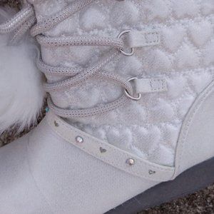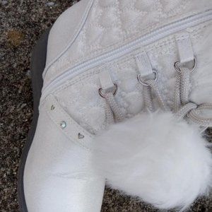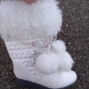 I'm second owner but my daughter never wore them so I have no idea how they fit, they possibly look as if they might fit narrow. They look to be in great pre owned condition. From a pet free/smoke free home. So cute for winter time and cute for a winter wear theme pageant!