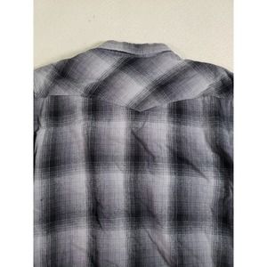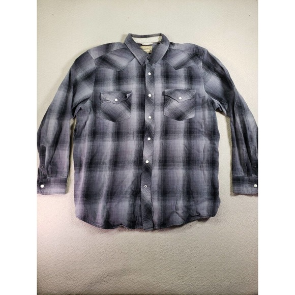 Roebuck Shirt Mens XL Cowboy Western Plaid Point Pocket Button Gray Pearl Snap