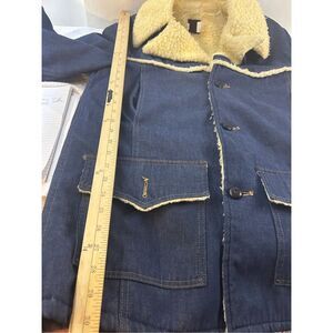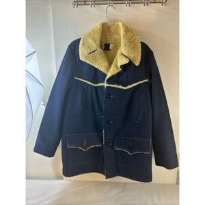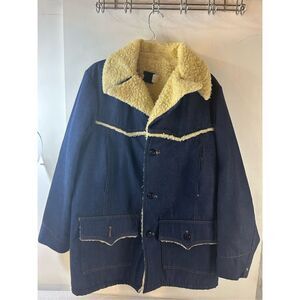 Roebuck denim jacket Sherpa lined 40 tall Vintage USA. rn#51302. measures 22" chest, 30" long. good used condition.