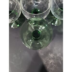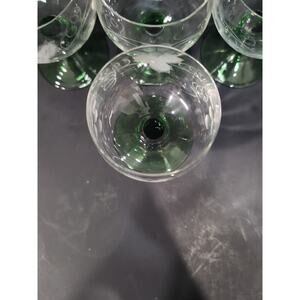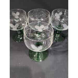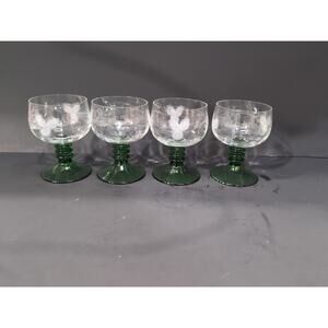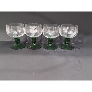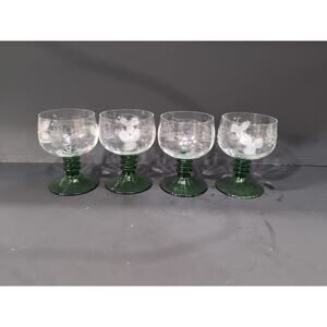 Roemer Etched Grape Glasses, Cordial Wine Set of 4, Green Ribbed Stem, Drinkware