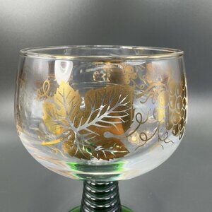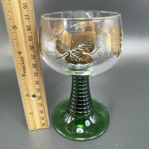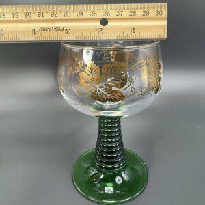 Roemer Glass Cup Goblet Green Beehive Stem Clear Gold Leafs Single Cup Germany