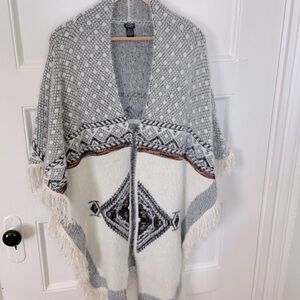 Roffe Accessories Cozy Knit Kimono Cape Gray & Cream - One Size - Western Style