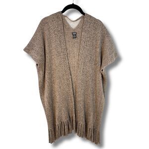 Roffe Accessories Fringed Open Front Cardigan Poncho Sweater Wrap Brown Soft