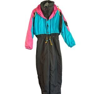 Roffe Ski Suit One Piece Vintage Snowsuit Full Zip Fanta Ski Women 10 Neon 80s