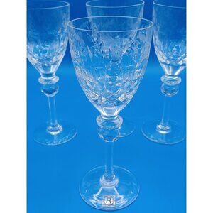 Rogaska Gallia Set Of 6 Floral Etched Cut Lead Crystal Wine Glasses 7" Tall