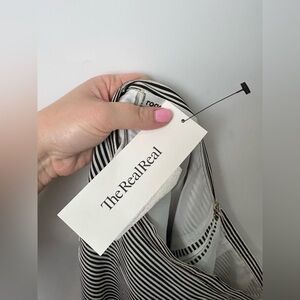 Stunning vintage outfit with horizontal black and white stripes. 100% silk. Spaghetti straps. Size 46. Please see measurements to ensure proper fit.
