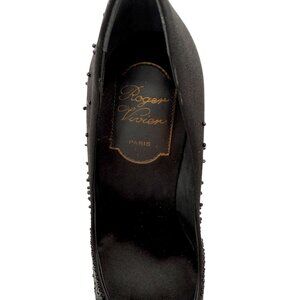 Tags: roger vivier heels, designer shoes, embellished pumps, satin heels, luxury footwear, evening shoes, paris designer, black stiletto heels, peep toe pumps, crystal detail heels, formal event shoes, high-end fashion