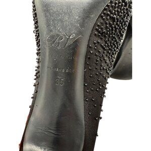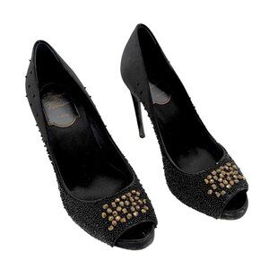 Roger Vivier Black Satin Embellished Peep Toe Heels - Size 5