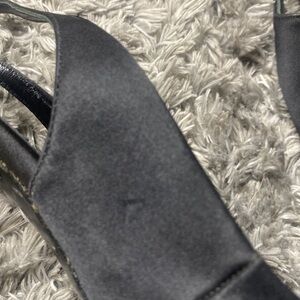 Roger Vivier Black Satin Floral crystal strass sling back heels 38. The sole and heel has been worked on and the heels still needs some work. Please take good look at the pictures for the exact condition