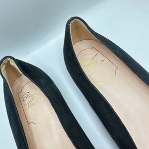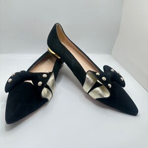 Roger Vivier Black Suede Lolita Pearl Embellished Bow Ballet Flats Sz 39