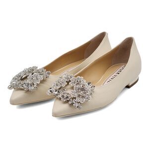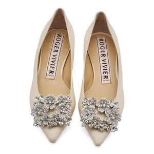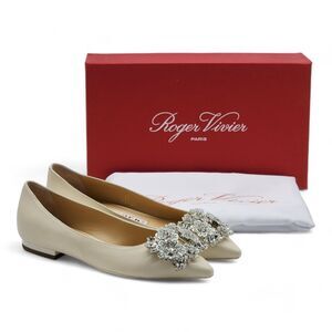 Roger Vivier Flower Strass Leather Ballet Flats in Beige $1650