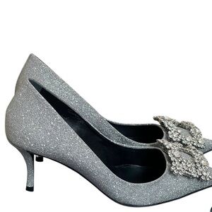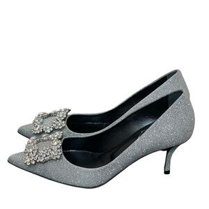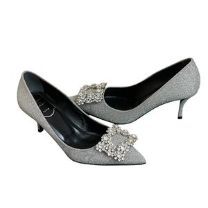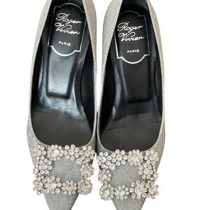 Roger Vivier Glittering Silver Heels with Crystal Embellishments size 34