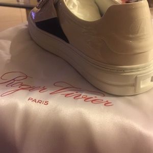 Roger Vivier Leather Strass Buckle Sneaker, Cream