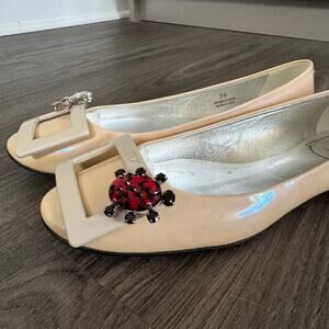 Roger Vivier Nude Patent Leather Jeweled Butterfly Ladybug Ballet Flats 36 Shoes