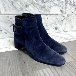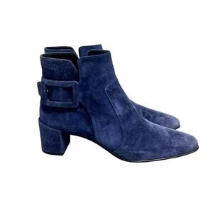 Roger Vivier Polly Suede Buckle Booties Blue Size 39, US 8.5 or 9