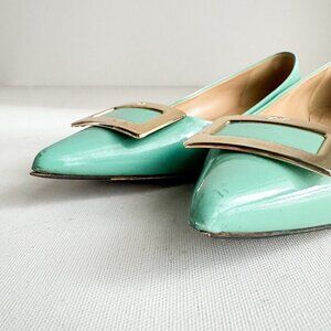 Roger Vivier Sea-foam Green Classic Buckle Accent Pointy Toe Flats 36.5