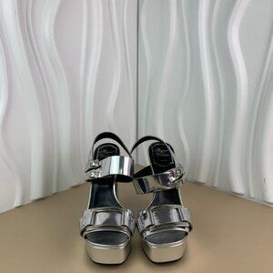Roger Vivier Silver Metallic Platform Heels With Chunky Block Heel & Adjustable