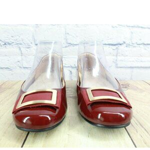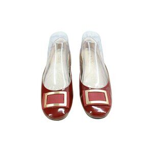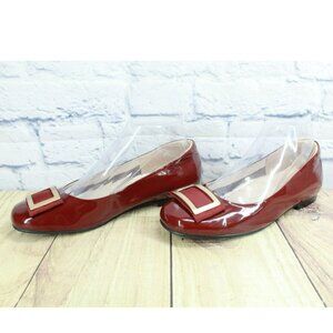 Roger Vivier Trompette Metal Buckle Ballerinas Flats Slip-on Leather Red Size 8