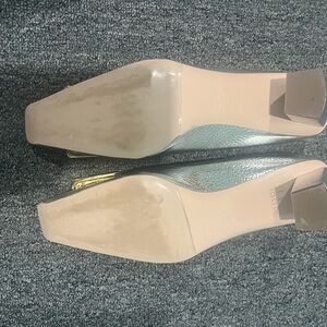 Hardly worn silver Roger Vivier shoes with 2 inch block heel. Has silver buckle.