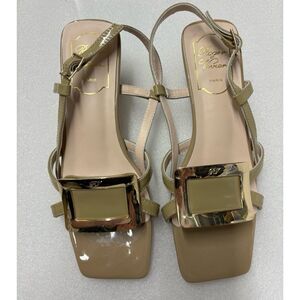 Roger Vivier Belle Vivier 'Cream Patent Gold Tone Metal Block Heel Sandals Sz35