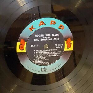 Roger Williams Songs Of The Soaring '60s Volume 1 (Vinyl, 1961) Kapp Records KL-1251 Good. Used with some wear and blemishes see pictures sold as is. Cover has pen marks, scuffs, stains, edge, corner and ring wear. Record has scratches that will affect play.