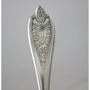 Elegant Old Colony serving tablespoons by International Silver, c. 1911. These silverplate utensils feature a monogram design, perfect for collectors or enhancing your dining experience. Backs are stamped 1847 Rogers Bros XS Triple. Spoons have a monogrammed "M" on the handles.