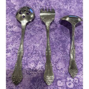 Rogers Dream Rose Hostess Slotted Spoon Fork Ladle Stainless Korea 3 Piece Set