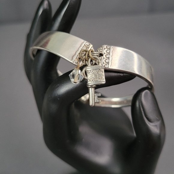 Rogers Signed Silver Tone Utensil Fashion Bracelet Lock Key Charm 5 3/4 in