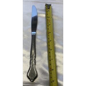 This listing is for one Dinner knife. It is made by Rogers Stainless. It is approximately 9 inches long and the handle is an hour glass design.