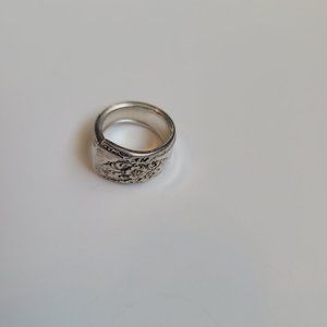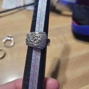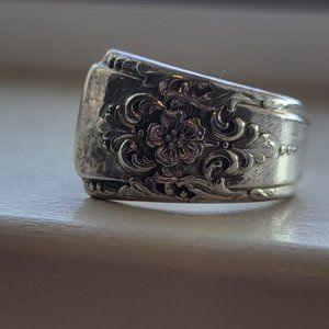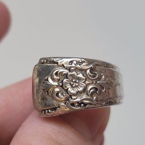 Rogers Vintage Repousse Floral Wrap Silver Spoon Ring Sz 6