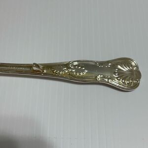 Vintage Rogers Silverplate Serving Ladle. Hook for resting in pot. Intricate design. Some spots need buffing, due to age and use. Lovely. 13”.