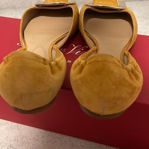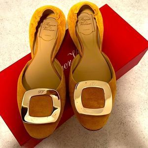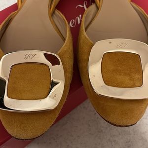 Roger Vivier Mustard Yellow Suede Tortoise Buckle Flats