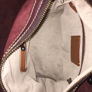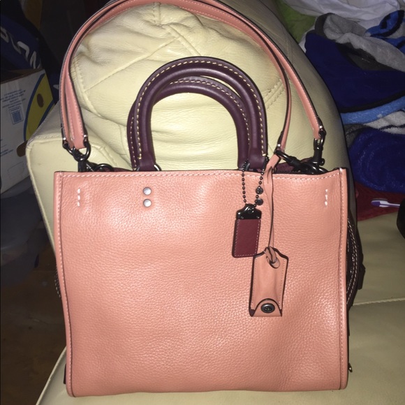 Coach Rogue In melon and ox blood excellent condition like new no rubs or scratches to the corners or feet of the Bag. Full size roughly 12 1/2 x 9 with shoulder straps compatible with Coach novelty straps. Price is firm