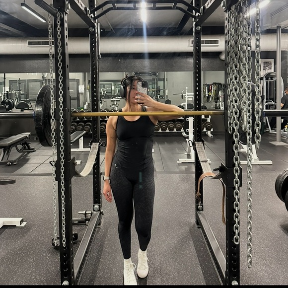 Rogue power rack in bold black. Ideal for intense workouts.